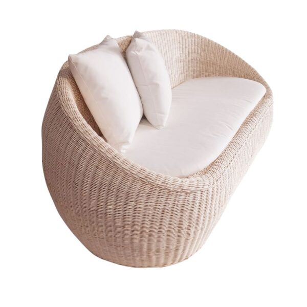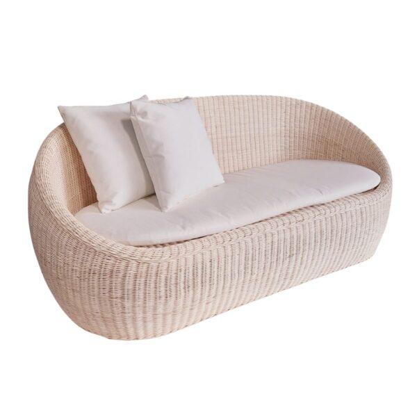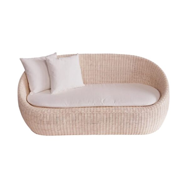 63″ W x 32.5″ D x 31″ H Material: Rattan Color: Natural/Brown, Beige Cushion Color: White