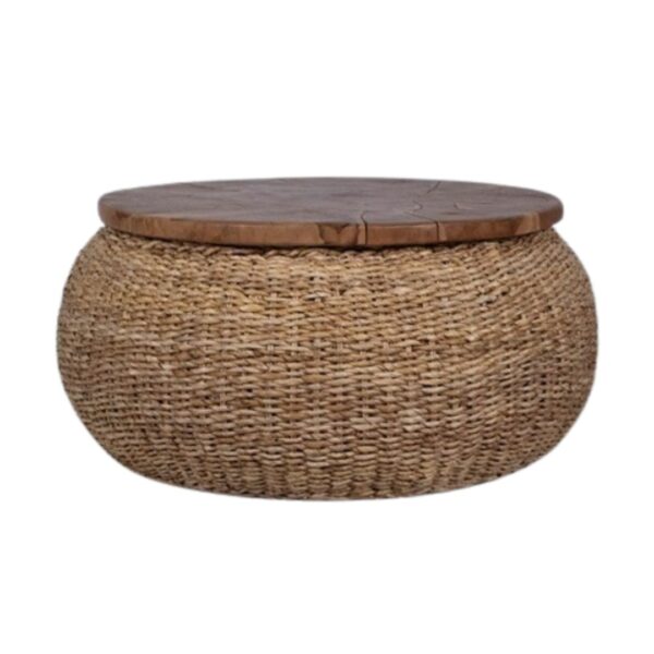 36″ Dia x 16″ H Material: Teak, Seagrass Color: Natural/Brown
