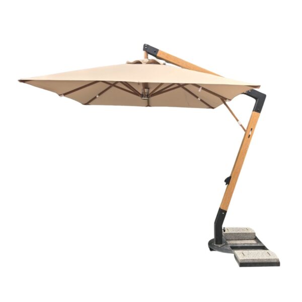 118″ x 118″ Material: Marble Base, Powder Coated Aluminum Frame & Sunbrella Fabric Color: Tan, Charcoal